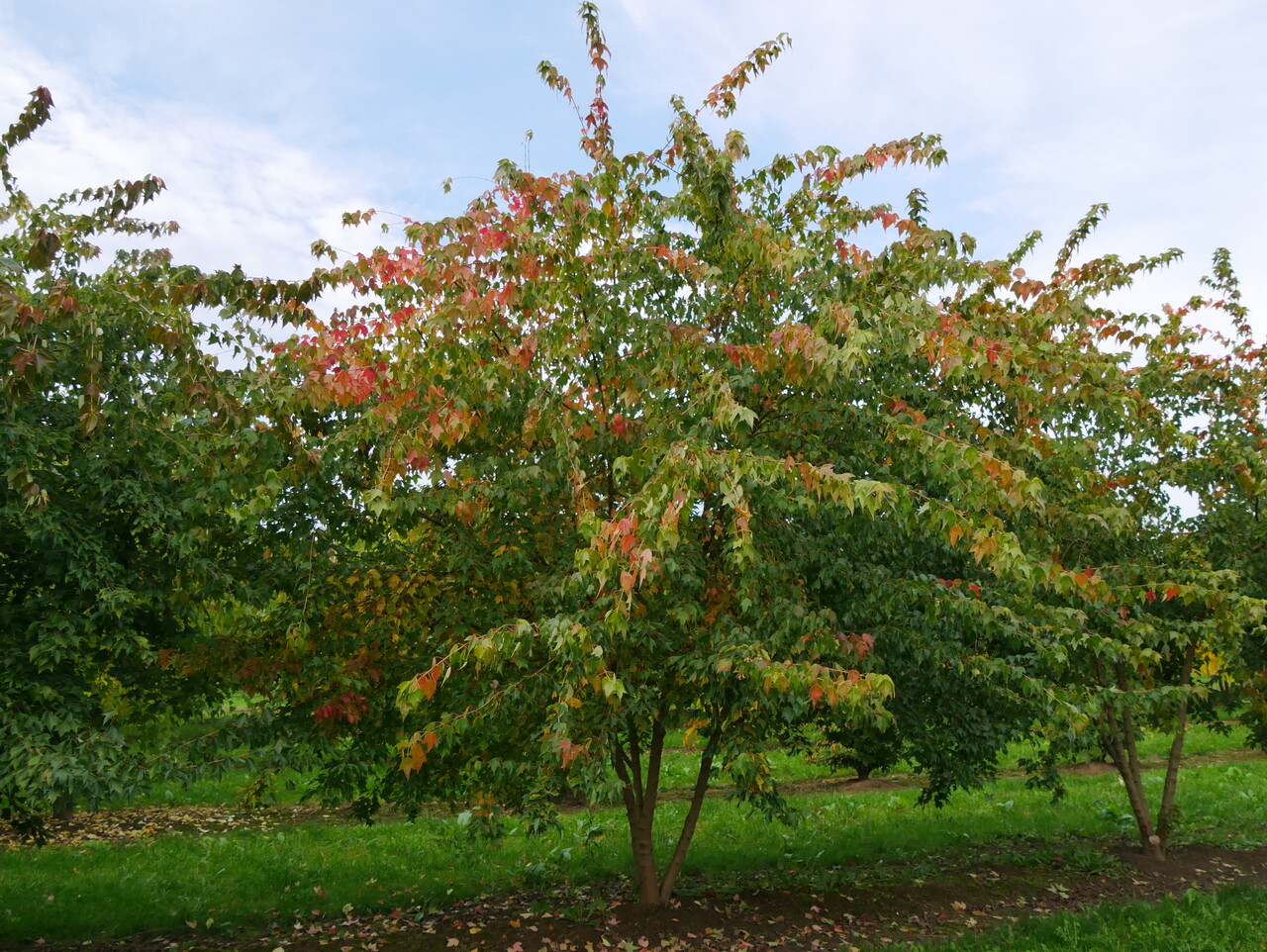 The leaves of Acer buergerianum turn sárga, narancssárga, piros in autumn.