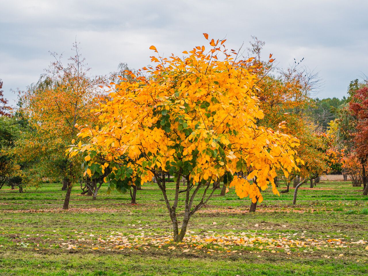The leaves of Cladrastis kentukea turn sárga in autumn.