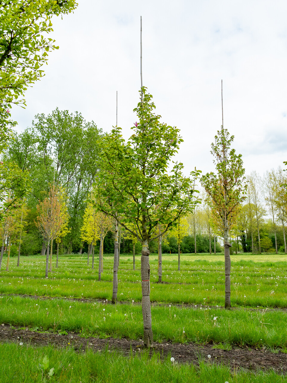Medium-size tree, initially with a regular, ovoid crown and a straight central leader. The crown later becomes almost round, with an eventual height of about 9 m. The flower buds only develop in spring, so they cannot freeze in the winter. The large flowers open around late April. The flower buds are a deep reddish purple. The opened flowers are deep pinkish purple on the outside and clearly lighter on the inside. They retain a narrow tulip shape for a long time, but eventually open to a broad saucer shape. Good tree for use in housing estates and on squares, thanks also to the pronounced colours and profuse blossoming.