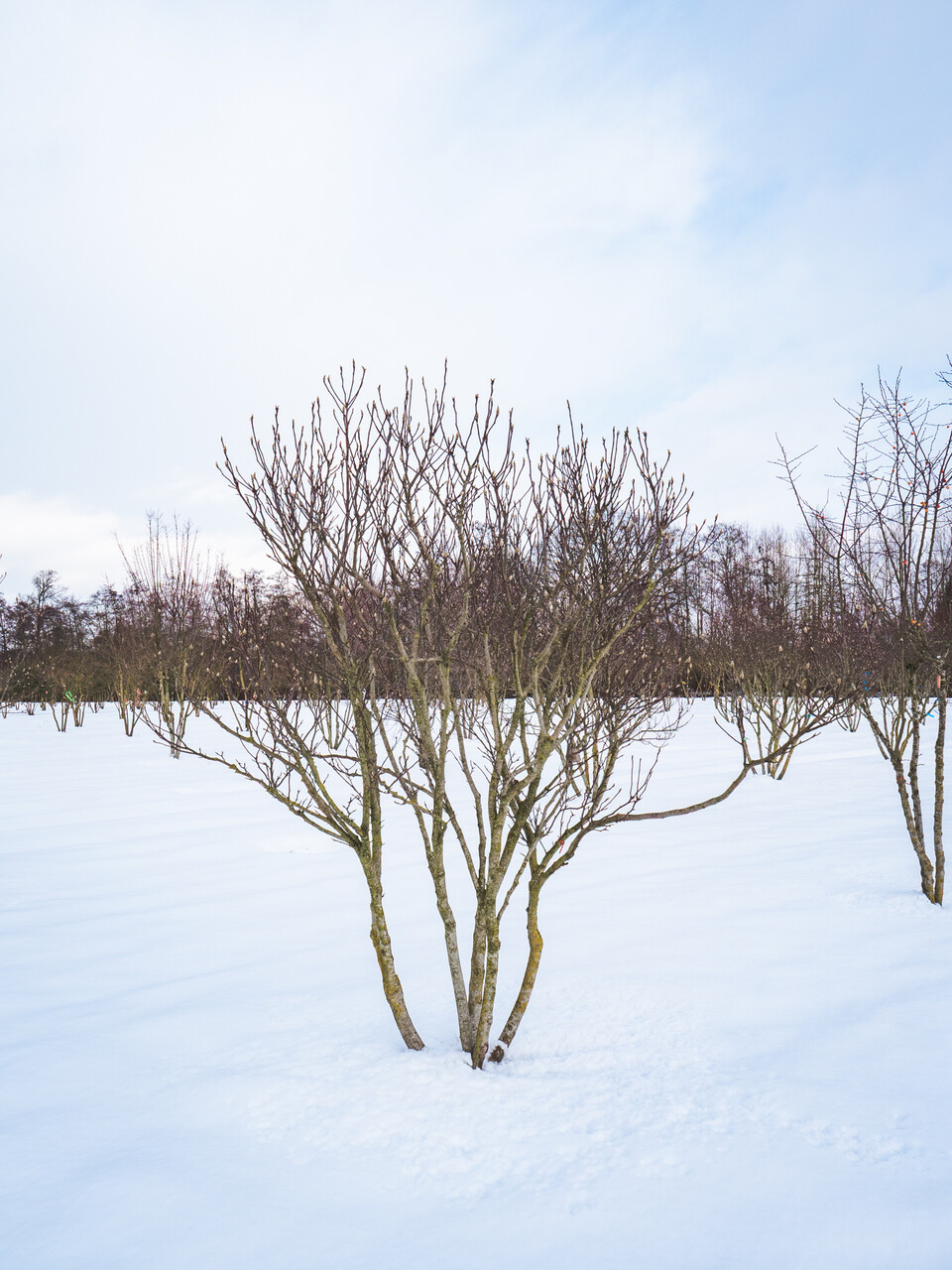 Grows from a shrub into a small tree with a densely branching, broad ovoid, later round crown. The flowers appear over a longer period. Depending on the temperature, the first flowers may open around mid-April. New buds continue to form while the shoots emerge and flowers are still opening in June, albeit less profusely than during the main blossoming. The flowers open from crescent-shaped buds. They are a warm, purplish red on the outside and light, pinkish purple on the inside. ‘Susan’ is the most successful cultivar of the series and is also known as ‘Eight Girls’. The main advantage of ‘Susan’ is that the flower buds only develop in spring, so they cannot freeze in the winter. Blossoms very profusely even from a young age.