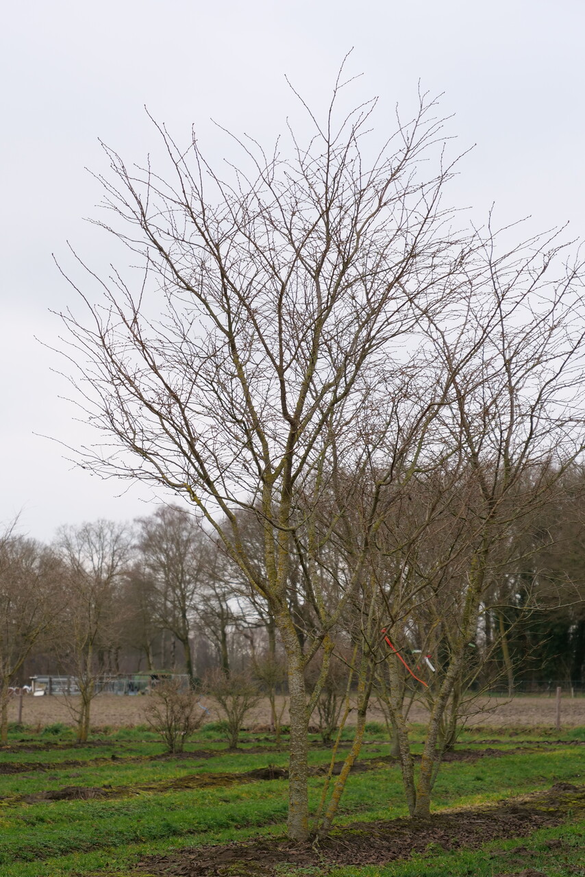 Small tree with overhanging twigs and a broad, funnel-shaped crown growing to a height of 6 - 8 m. The green, ovoid to elongated leaves taper to a long point and are 6 - 12 cm long. The leaf edge is serrated, the autumn colour (orange) yellow to red. 'Accolade' is an early-flowering cultivar with flowers in hanging bunches. In April the light pink flowers, approx. 4 cm in size and semi-double, emerge from pink flower buds. It is used as a park tree, solitary and planted in wide stretches of greenery. Prefers soils capable of providing a good deal of moisture. Prefers a light and sunny site. It is reasonably wind resistant but cannot take sea winds. Winter hardiness zone: 6a