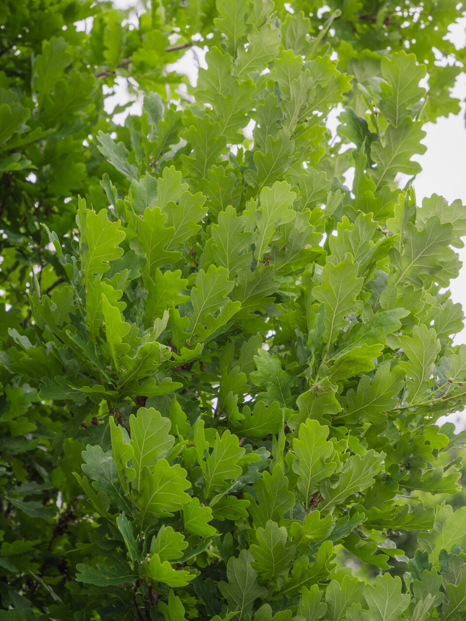 A clone produced vegetatively from Q. robur 'Fastigiata', with rough ascending branches that do not droop. This creates a closed columnar shape that later becomes narrow pyramidal but still remains well closed. Height approx. 10 - 15 m, breadth 3 - 6 m. The trunk usually branches low down and the bark is dark grey and, in old specimens, deeply grooved. Young twigs are reddish-brown. The variable leaves are obovate to elongated oval and a little larger than those of the species. They have 3 to 6 pairs of blunt lobes and emerge brownish-red in the spring. The ovoid acorns are grouped in twos to sixes and are a maximum of one-third enclosed in the cupule. 'Fastigiate Koster' is one of the best columnar oaks. 'Fastigiata Koster' stands up well to hard surfaces, making it an ideal tree for narrow avenues and streets.