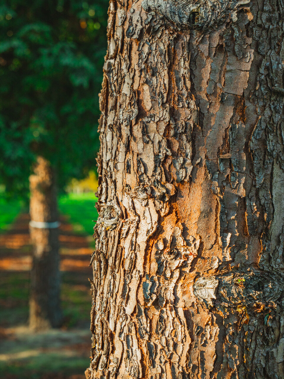 Fast growing conifer with a narrow pyramidal crown, up to 30 m, even higher in the right conditions. The striking, orange-yellow bark is soft and fibrous and peels off in long strips. The horizontally attached twigs are in whorls. The needles are spirally arranged along the twigs and are pressed against the twig at their base. They are blue-green and have two stomatal stripes on the underside. In winter their colour becomes more intense and more blue than green. The narrow oval cones are brown and relatively inconspicuous. When mature, ‘Winter Blue’ is more densely branched than the species. The slender crown of this large tree means it can also be used in wide borders. Prefers to grow on a well-drained, sandy loam soil. Good wind tolerance. Can also tolerate sea wind but not drying wind. When young this tree needs protection against severe frost.