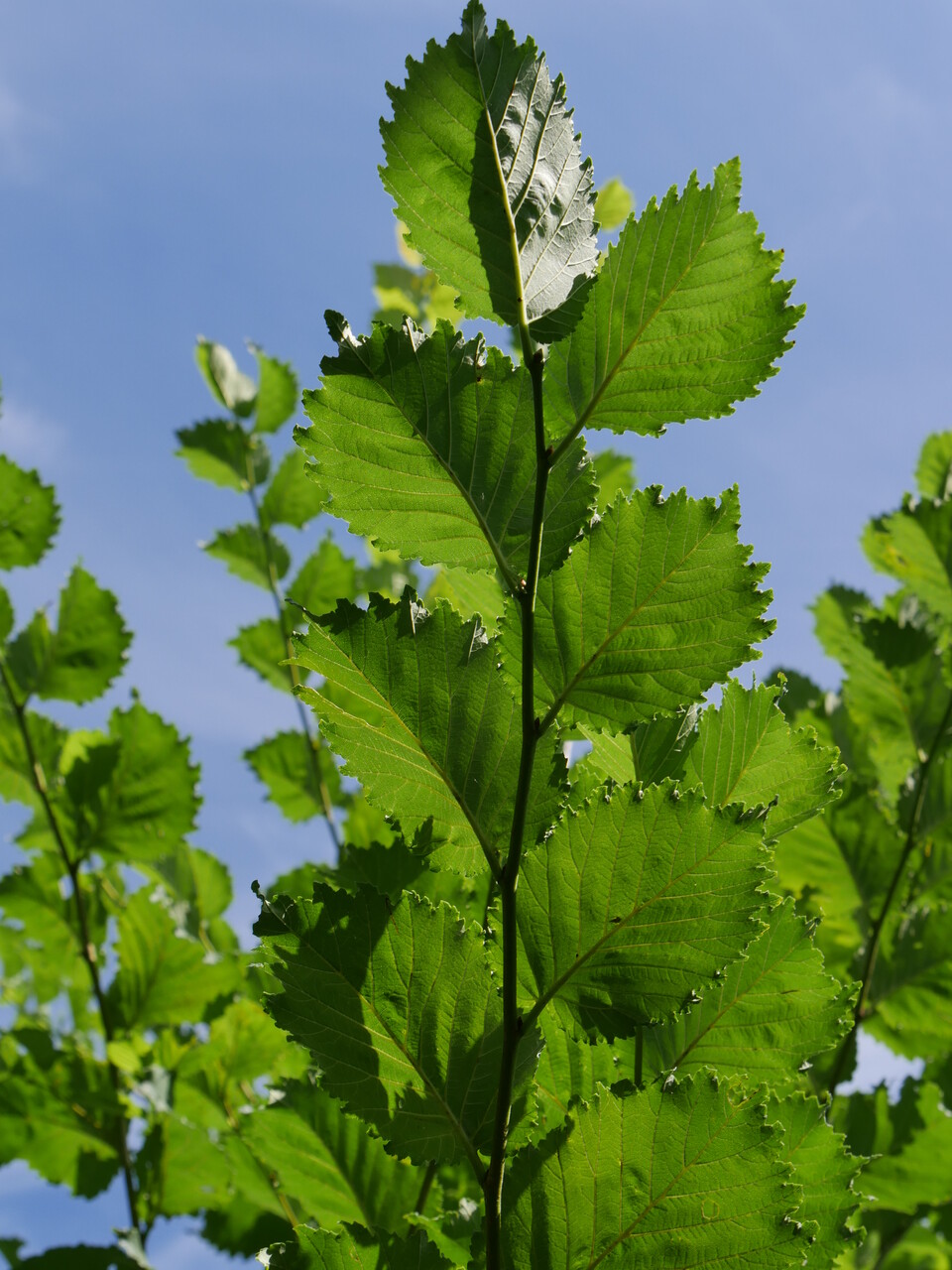 Medium-size to large tree with an ascending vase-shaped crown. Mainly young trees grow upwards well and on favourable sites, the tree can grow quickly. The tree eventually grows to a height of 10 to 15 m. The year-old twigs are brown-green, the older bark is brown-grey and smooth. The dark green leaf is broad ovate to broad obovate. The leaf margins are strikingly rough serrated. In autumn the leaf turns yellow. Lutèce was developed in the Netherlands by Hans Heybroek and Alterra but never released. During French tests into resistance to Dutch elm disease, this variety scored very well and was acquired and marketed by the French INRA. The tree also has good wind resistance.