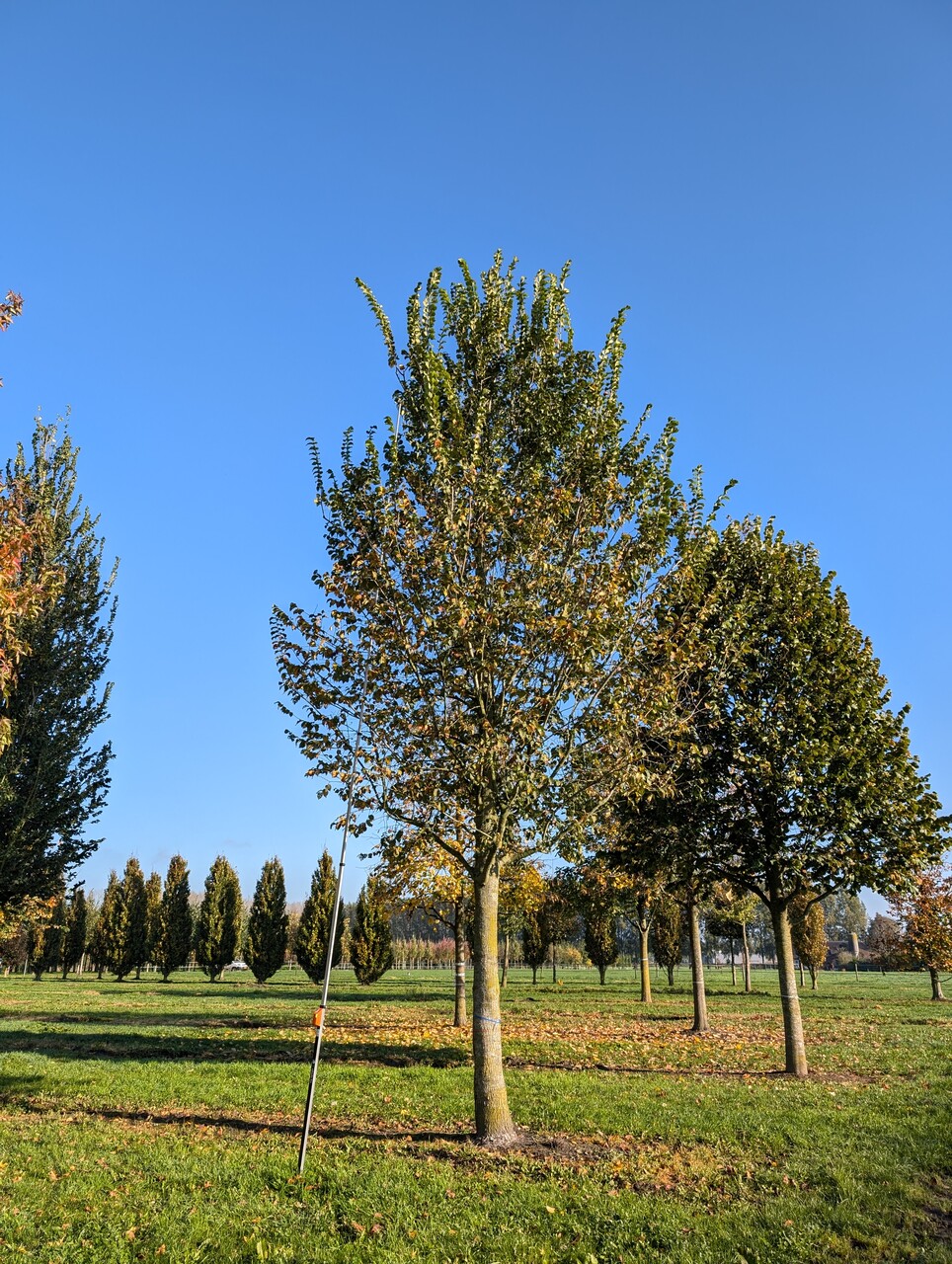 The leaves of Ulmus LUTECE ('Nanguen') turn sárga in autumn.