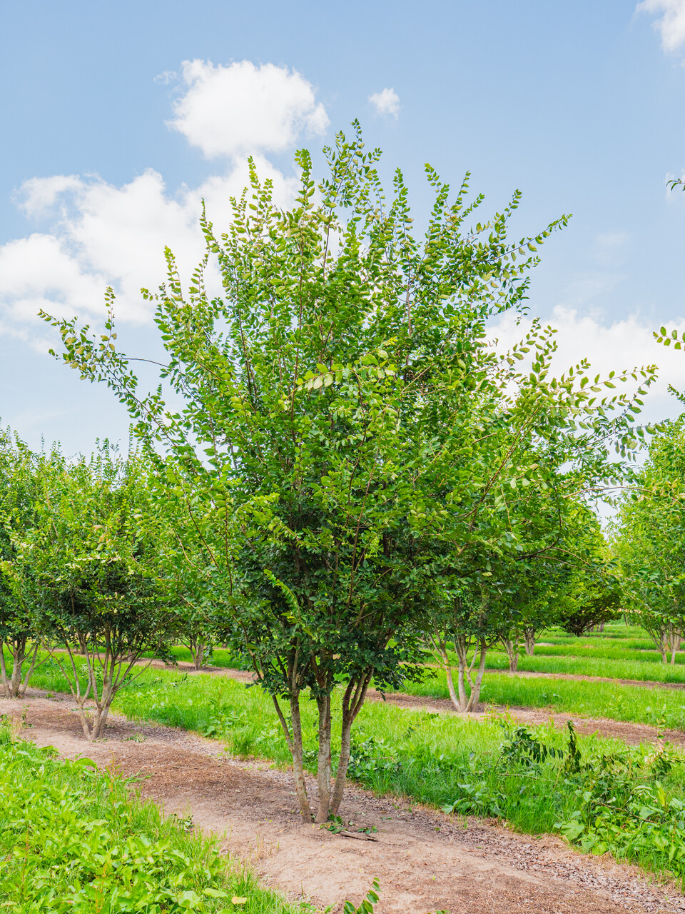 Large tree with a distinctly upright habit and ascending branches. The branching often begins near the ground. Eventually the crown becomes oval to vase-shaped and 25 - 30 m tall. The young twigs are brown and hairless. Old bark is grey-brown, initially smooth but later peels off in small plates revealing the orange bast. The slightly crooked, ovate to oval leaf is dark green with rough hairs on top. The underside is lighter with soft hair. In autumn the leaf turns brownish yellow. The inconspicuous green flowers appear during or just after the leaf emerges and are followed by small, crooked, round fruits. Superficially, the tree has something of Ulmus parvifolia but differs from this in the unisexual flowers and the wingless fruits. Easy park tree with lovely crown shape.