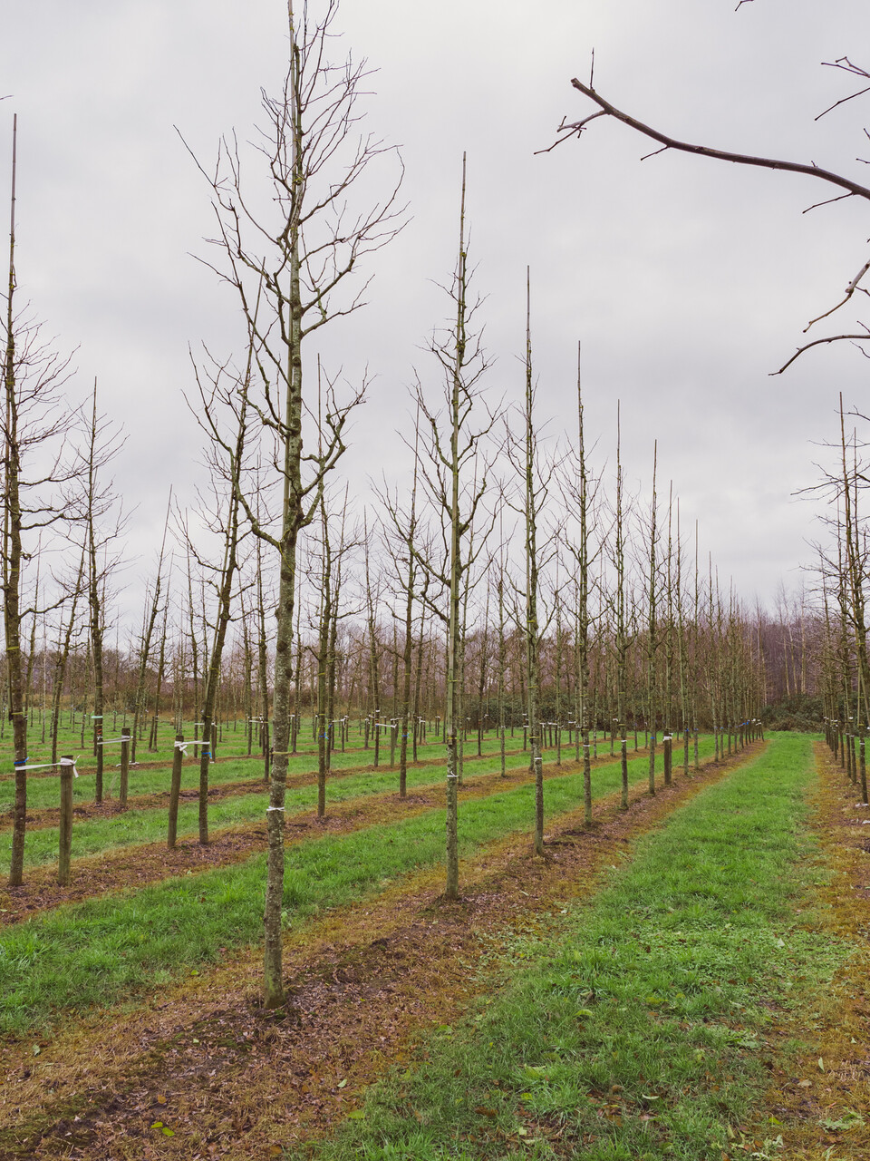 Medium-size tree with a narrow pyramidal crown, up to approx. 13 m. Because the trunk grows a straight central leader with little forking, it forms a regular crown. The thornless twigs are olive green, while the older bark is smooth and grey-brown. Grows thicker than other Gleditsia cultivars. The compound leaf emerges late. It is glossy dark green, turning golden yellow in autumn. Does not blossom very profusely, so produces hardly any fruit. Easier to cultivate in comparison to other Gleditsias. Very good street and avenue tree: can grow amid paved surfaces. Also suitable for industrial areas.